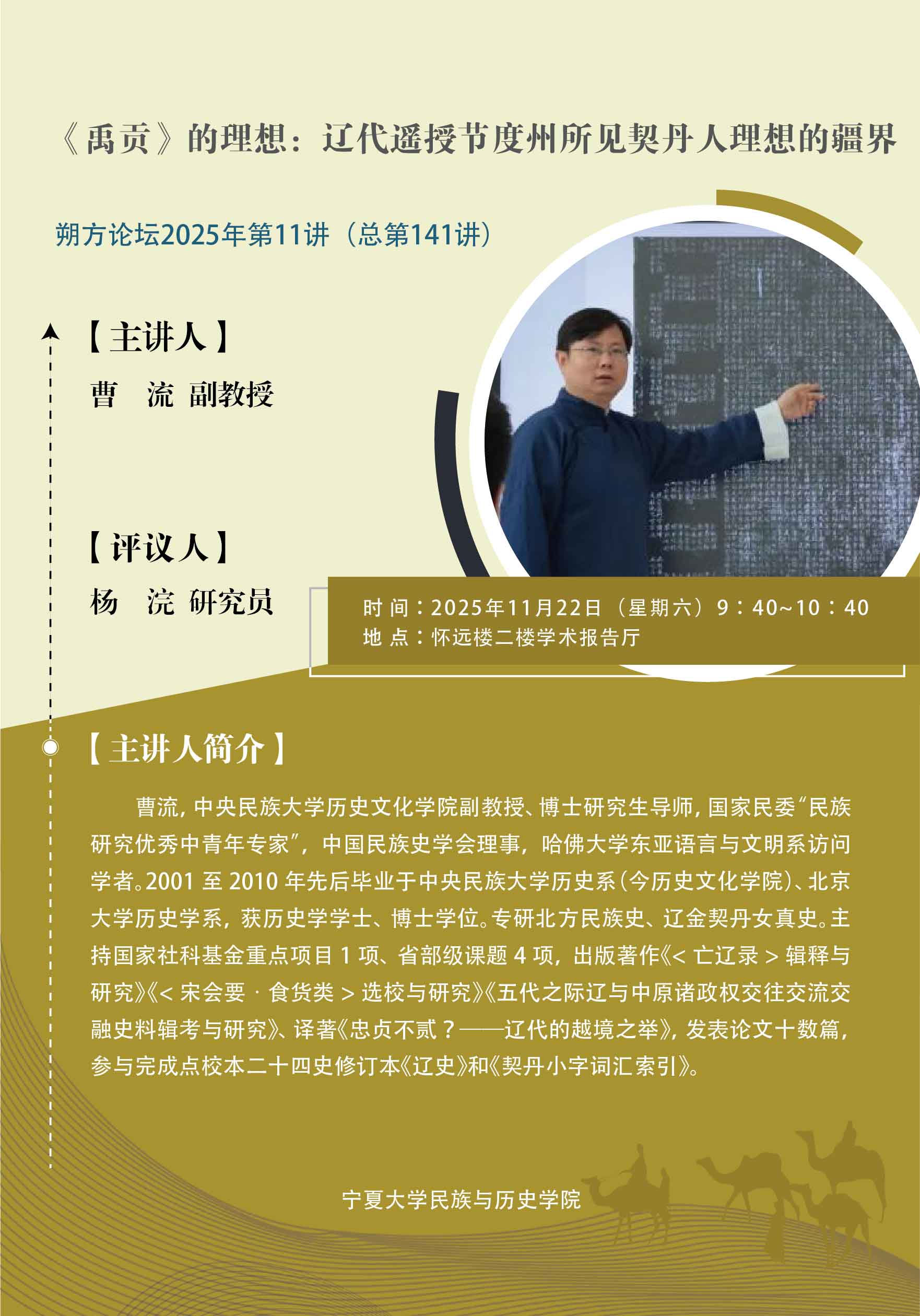 报告题目:《禹贡》的理想:辽代遥授节度州所见契丹人理想的疆界
